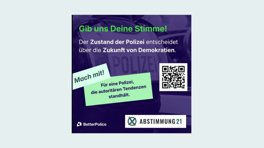 Für eine zukunftsfähige Polizei – Sicherheit demokratisch stärken! Die Polizei ist eine tragende Säule unseres demokratischen Rechtsstaats. Sie schützt Grundrechte, soll Sicherheit gewährleisten und besitzt weitreichende Eingriffsrechte. Deshalb muss sie demokratisch gefestigt sein und über unabhängige Schutzmechanismen verfügen. Hier kommst Du direkt zur Abstimmung: Für eine zukunftsfähige Polizei – Sicherheit demokratisch stärken! | ABSTIMMUNG21 Themenwahl […]